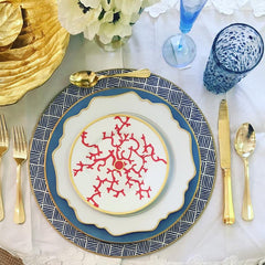Stylized branches of sea coral in vibrant coral red, matching solid-color rims and pure gold-plated edging make Raynaud's Cristobal Dessert Plate are works of art for...