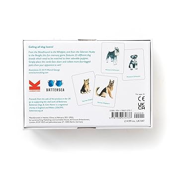 Match the dogs and puppies of 25 breeds from around the world in this beautifully illustrated memory game. To play, simply place the cards face down and see if you can remember where the dog and its puppy are located. Collect more pairs than your opponent to win!