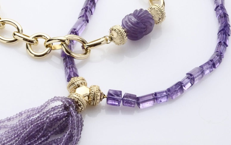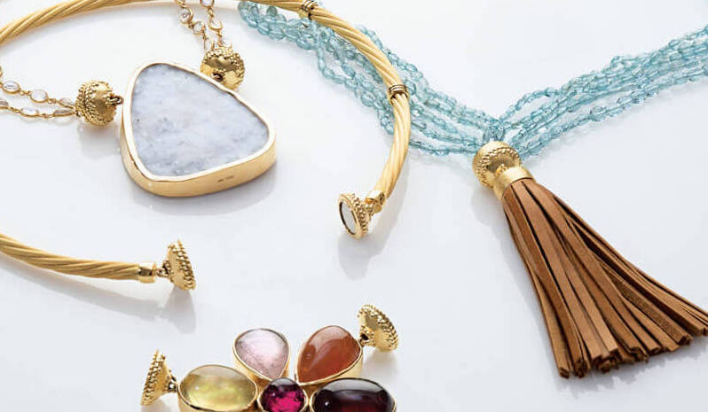 Shop Clara Williams Company's mixed metal jewelry designs of one-of-a-kind stones, jewels, and unusual treasures. Discover pieces with their signature magnetic metal clasp and shepherd's hook for a clever and refined finish.